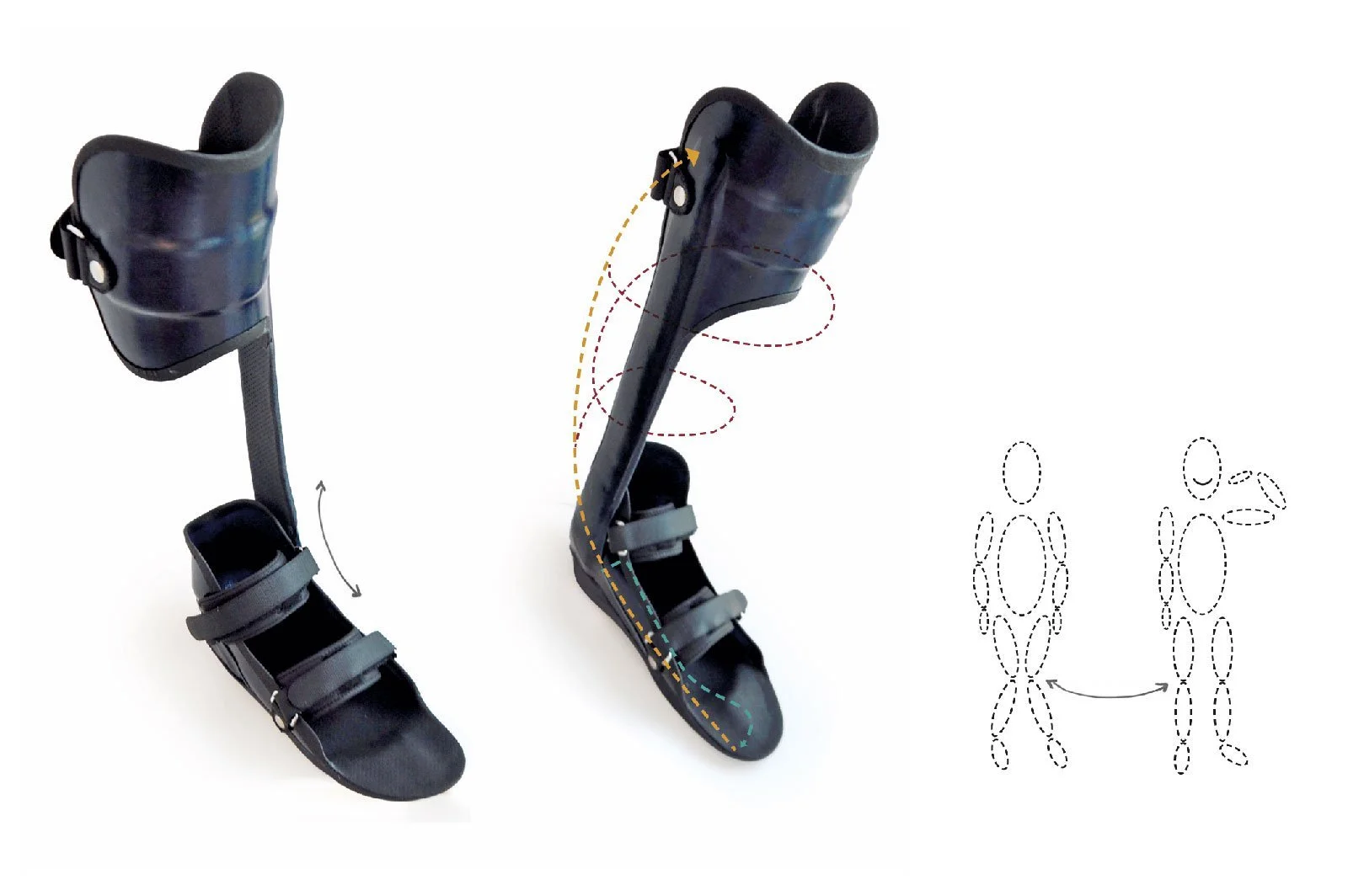 In fabrication, particular attention is given to the eccentric activation of the pretibial musculature and its neuromuscular control. Depending on individual requirements, the spring can be guided along the ankle region to support heel strike. Joint movement is not restricted, but rather guided through the structure of the orthosis.